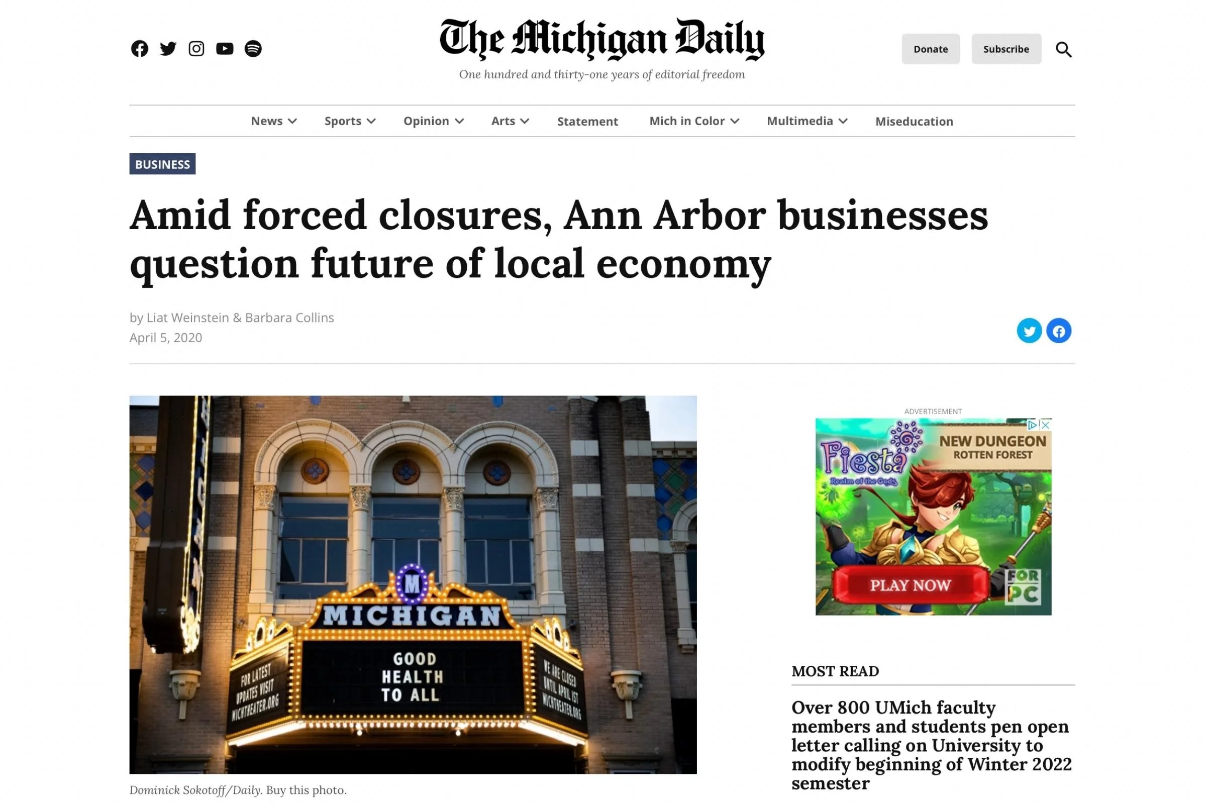 College Tear Sheets